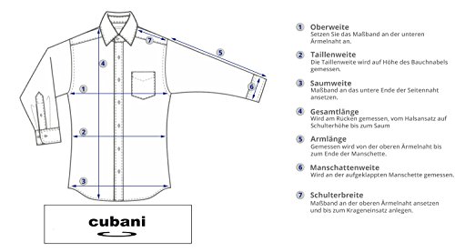 Schaeffer Mode präsentiert Ihnen das Cubani Pilotenhemd. Exklusiv bieten wir die exzellente Marke Cubani in unserem Shop an. Die Herrenhemden von Cubani werden in der EU produziert und aus hochwertigen Stoffen gefertigt. Durch die sehr gute Verarbeitung und den klassischen Schnitt, aber auch den hervorragenden Preis, sind die Cubani Hemden besonders gut für den Alltag geeignet. Der bequeme Stoff ist gerade an längeren Tagen angenehm auf der Haut und sorgt für einen hohen Tragekomfort. Unser Cubani Pilotenhemd hat folgende Merkmale: -Kent-Kragen -Langarm – normaler Arm (65 cm) -Klassische Schnittführung – Gr. 41/42 (L) Taillenweite = 118 cm -Abgerundete Variomanschetten -Schlitzbesatz mit Knopf -Knöpfe über Kreuz angenäht für besonders festen Halt -2 Brusttaschen mit Falte, links mit Kugelschreiberfach -Schulter mit Tunnel und 2 Schulterpatten (geknöpft und abnehmbar) -Popeline Stoff aus 60% Baumwolle und 40% Polyester -waschbar bei 40 Grad