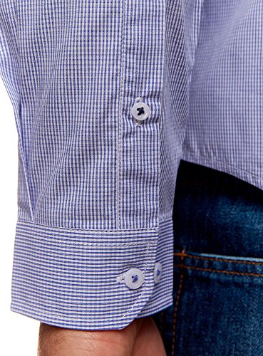 Klassisches tailliertes Hemd mit geometrischem Print. Lange Ärmel, Rückenpasse, Button-down-Kragen mit Knöpfen, Knopfleiste vorne. Der klassische gerade Schnitt lässt dieses Hemd gleichermaßen gut an Herren mit unterschiedlichem Körperbau aussehen, unabhängig vom Alter und Größe. Das schlichte Design lässt das Hemd universal und praktisch erscheinen. Solch ein elegantes Hemd gehört in jede Männergarderobe. Damit lassen sich viele Looks im Business- und Alltagsstil zaubern. Es kann wunderbar mit geraden und eng zulaufenden Hosen, aber auch mit Jeans kombinieren. Das Hemd kann oben mit einem Strickpullunder, einem Pulli mit V-Ausschnitt oder einem sportlichen Sakko ergänzt werden. Das Hemd wird in die Hose gesteckt getragen. An Schuhen sollte man zu klassischen Modellen tendieren. Anlass: Casual;